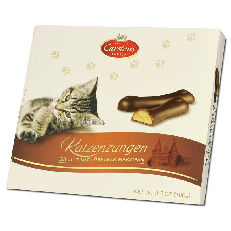 Maigas Lībekas marcipāna kaķa mēlītes no tradīcijām bagātā Carstens ražotāja – unikāls svaiga, sulīga marcipāna un izsmalcinātas tumšās šokolādes apvienojums. Katrs kumoss ir īsts baudījums. Gatavotas pēc pārbaudītām tradicionālām receptēm un ar Lībekas amatniecības meistarību, šīs izcilās kaķa mēlītes ir īsts gardums visiem marcipāna cienītājiem!